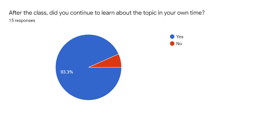 In addition, I found that the majority of the students engaged outside the classroom with the concepts introduced to them via the QD. 14 people said that they continued to learn about it in their own time; the majority of those people said that they talked to their peers about it, did additional independent research and / or referred to the source of the quotation. In addition, where people had additional questions about the QD, 12 respondents indicated that they discussed them with their peers. This is a great example that the students are sufficiently confident to continue their learning independently, take charge and also learn socially (an example of constructivism and social constructivism in action).